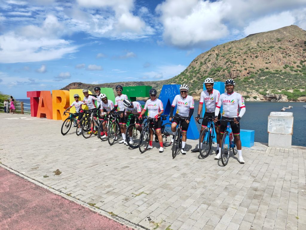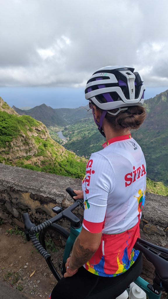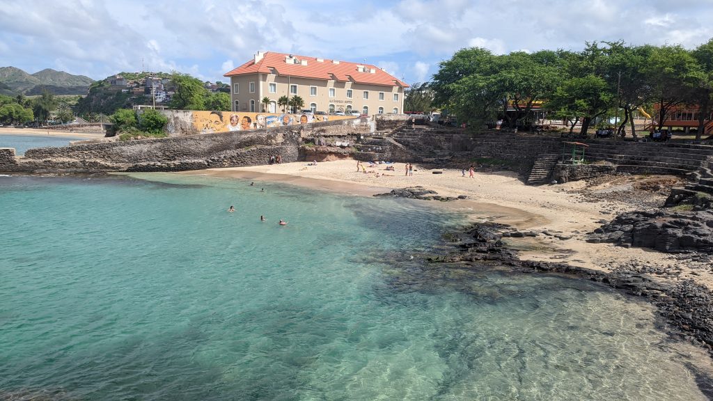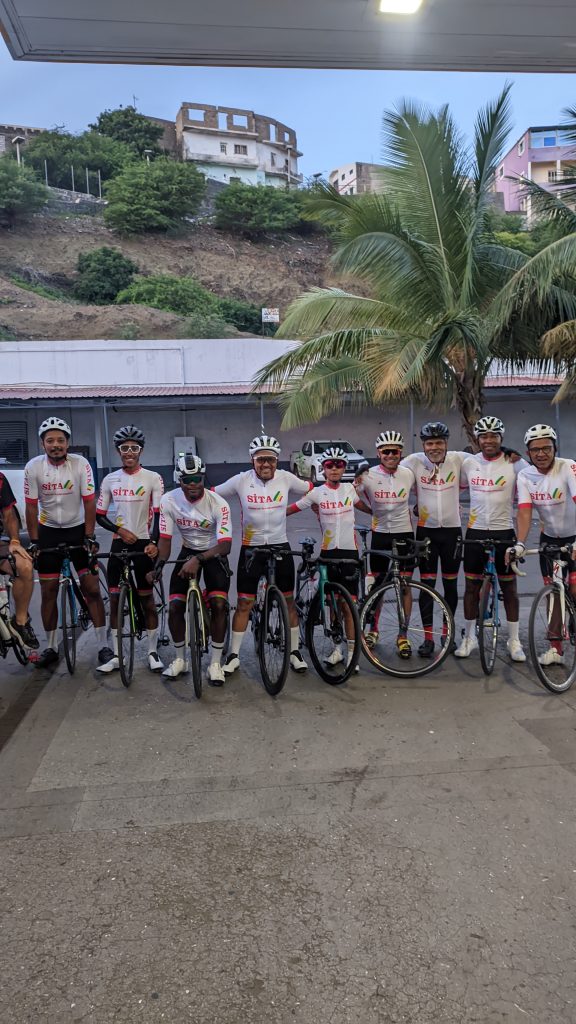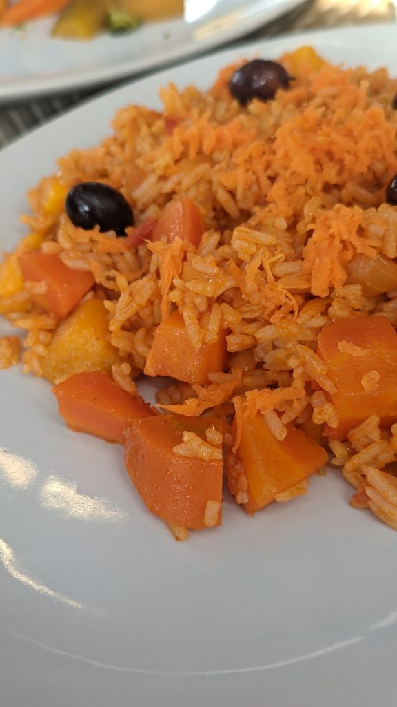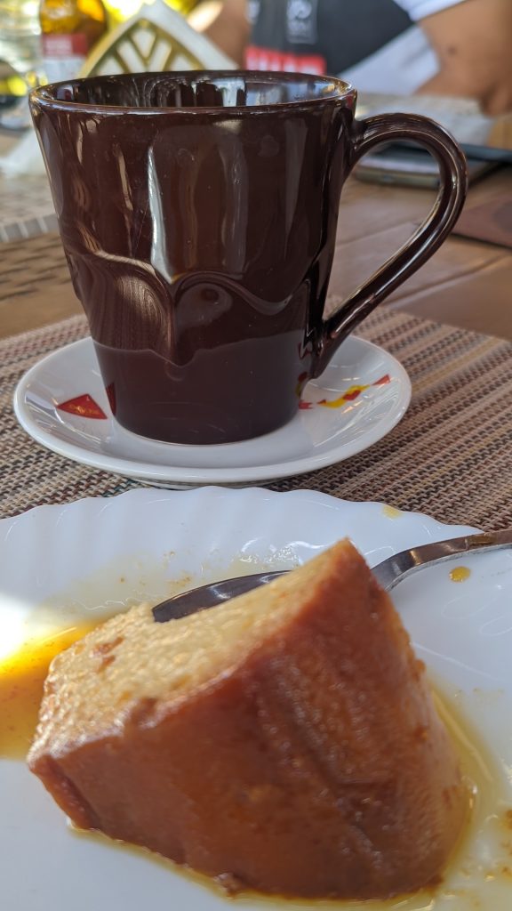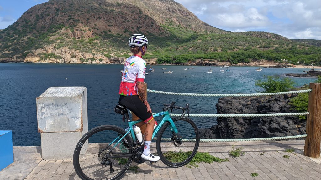 E o que é que falta na checklist do ciclista? Falta o bom do repasto! E que repasto nos prepararam no restaurante Hola Orla! Que manjar! Bebidas sobre a mesa, da água ao bissape e sumo de calabaceira, passando pelas cervejas e pelo vinho, até aos refrigerantes para todos os gostos, arroz, feijoada, saladas, legumes cozidos (onde não faltavam as variadas batatas doces e abóboras da terra) – sim, também havia, obviamente, vários pratos carnívoros, mas vocês sabem que passo essa parte 😂😚) – pudim de leite, salada de fruta, cafés e abatanado! Tanta variedade com exímia qualidade! Foi ou não foi um manjar? Volto ao Tarrafal só pelo Hola Orla! Testado e recomendado! 🤤😋