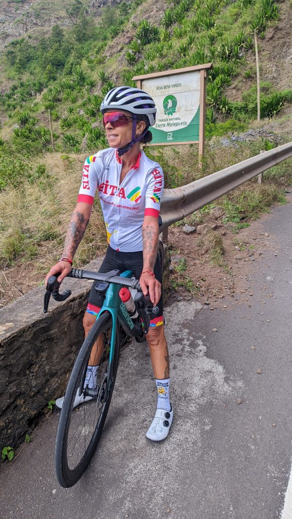 Quando cheguei à derradeira e temida subida para atravessar a Serra da Malagueta, confesso que já as horas, os KMS e a brincadeira dos QOMs me entorpeciam as pernas. O Júlio atacou logo no início – possante como é, já anteveêm que ganhou distância nos primeiros km; o jovem promissor Nilson, qual trepador, segui-lhe a roda e, com facilidade, iniciou a escalada. A mim sobrou-me, como é apanágio, a cabeça. Mantive-me numa posição com contacto visual e procurei ascender num ritmo constante. Lentamente fui progredindo e, tão encantada com os planaltos que se construíam à minha direita quão necessitada de algo que me motivasse e entretivesse, viria, entretanto, a ultrapassar os outros dois colegas. Segui absorvida pela imponência rochosa, pela grandiosidade dos vales, das montanhas que se somavam. Como era muito mais majestosa a Serra da Malagueta na bicicleta do que pela vidraça da carrinha!