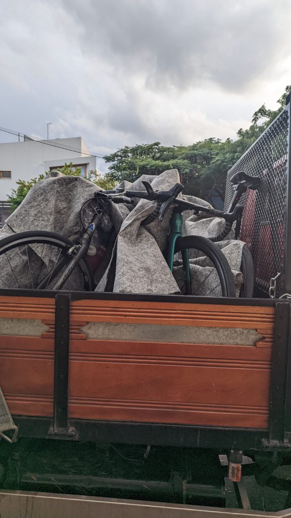 Daquilo que para mim está no topo da lista das prioridades é o cuidar bem da minha Bianchi. Assim, agrada-me ver que as bicicletas são devidamente acondicionadas com mantas de proteção no transporte.